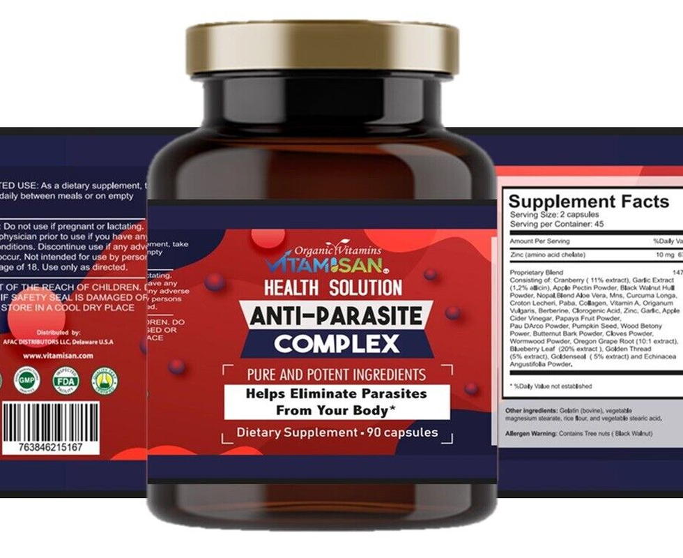 1 Anti parasite complex 90 capsules organic vitamins propietary blend 1475 + 10 mg zinc extra . total round 1500 mg x doses