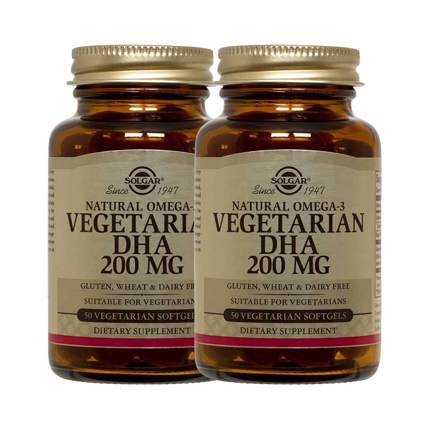 2 x Solgar Omega 3 Vegetarian DHA 200 mg 50 Veg Softgels