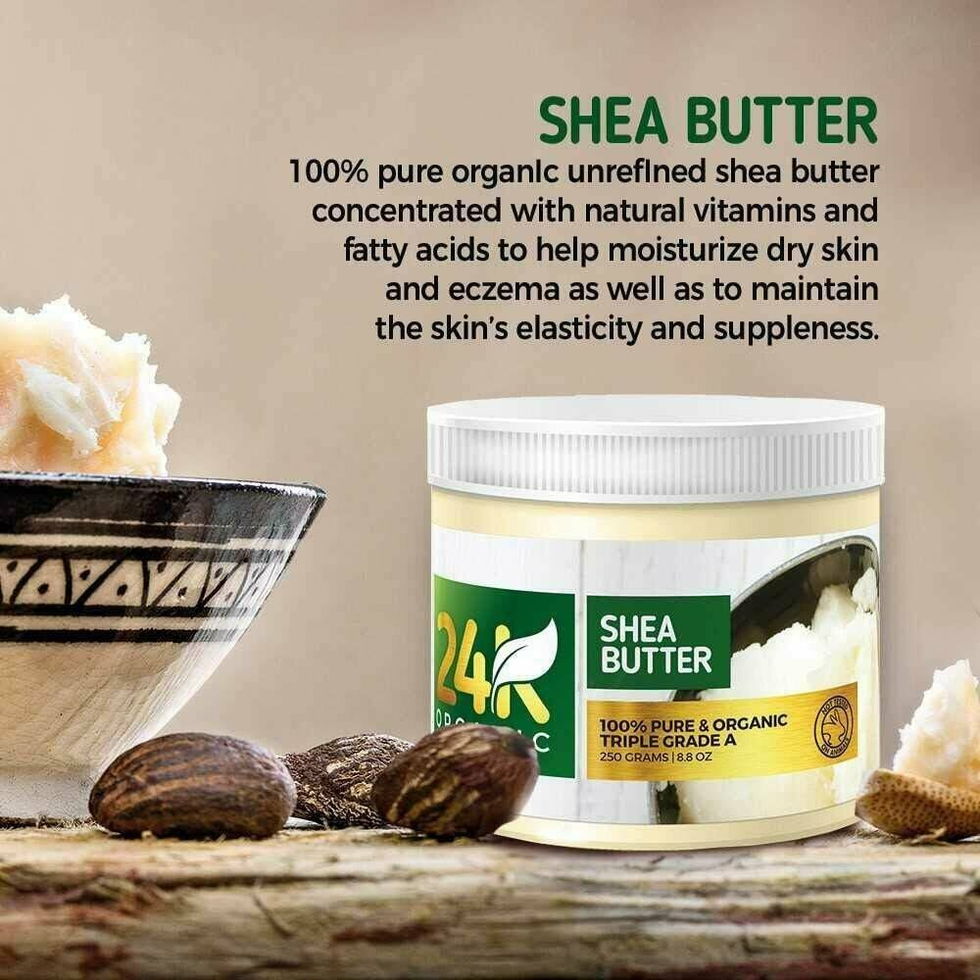 24K Organic Shea Butter Skin Nourishing, Moisturizing & Healing (8.8 Oz.)