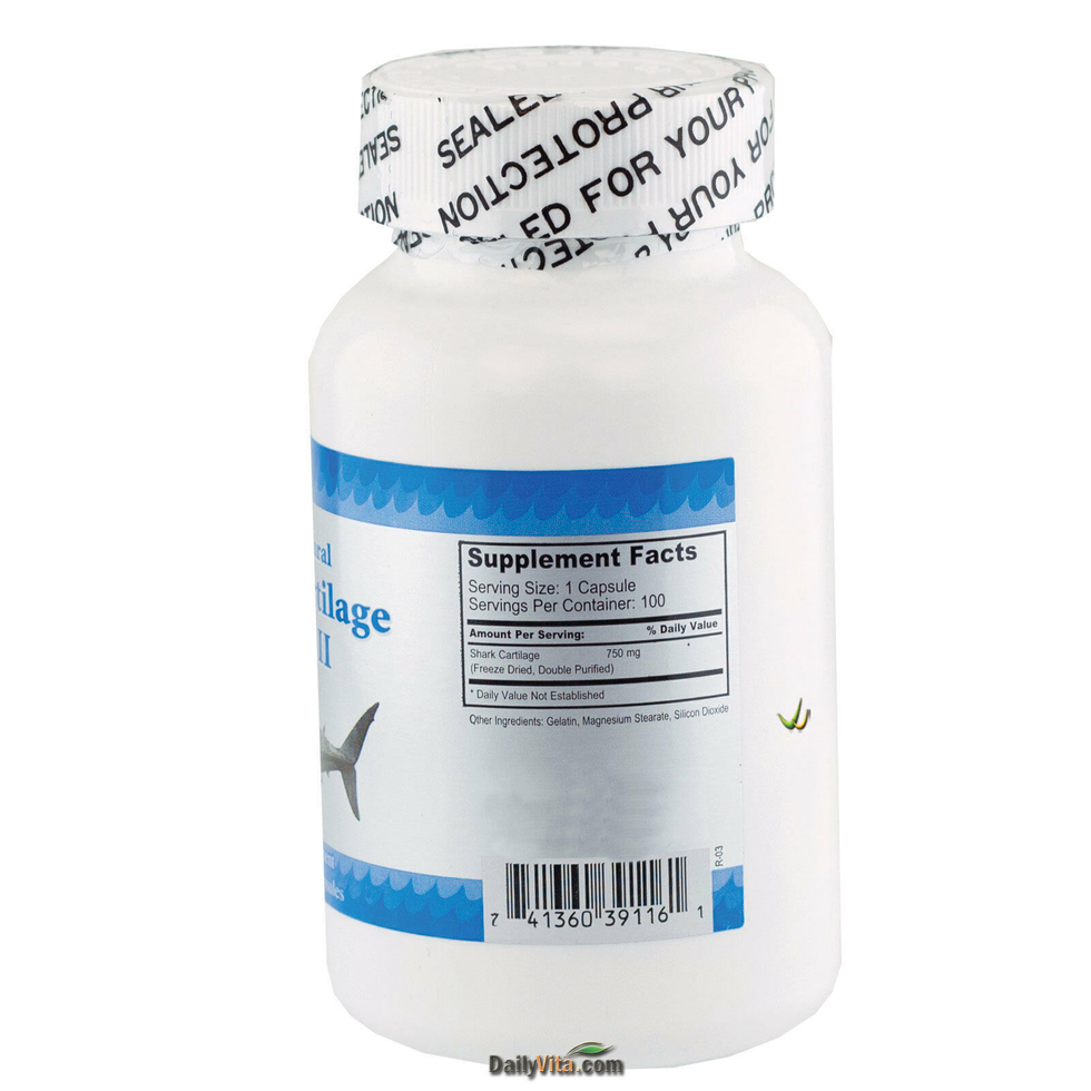 Shark Cartilage is a dietary supplement made from pure freeze-dried and powdered cartilage of shark. Shark Cartilage is a natural source of Chondroitin Sulfate, which is a key structural component in human cartilage providing natural joint support. Sharks are said to be the healthiest creatures on earth. Its cartilage is composed of calcium, proteins, collagen, and sulfur. Its cartilage is even believed to have cancer-fighting qualities. Shark cartilage has certain substances that inhibit the growth of new blood cells that nurture and encourage growth, thus cutting the blood flow to cancerous tumors and resulting in shrinkage. It has also been recommended for reducing inflammation and pain in the joints. Additionally, shark cartilage is rich in proteins and calcium, therefore it is oftentimes consumed as a dietary supplement to boost immunity. Recommended Use:Take 1-3 capsules after meals. Three times a day as a dietary supplement, 3-5 capsules and four times a day if needed. Made In U.S.A *This statement has not been evaluated by the Food and Drug Administration. This product is not intended to diagnose, treat, cure or prevent any disease. Keep out of the reach of children. in a cool dry place, tightly closed.Best Seller