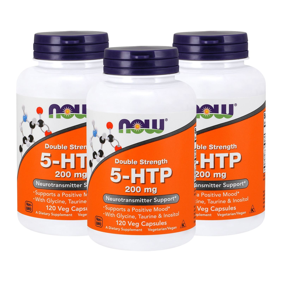 3 x NOW 5 HTP 200 mg Double Strength 120 Veg Caps Supports Positive Mood