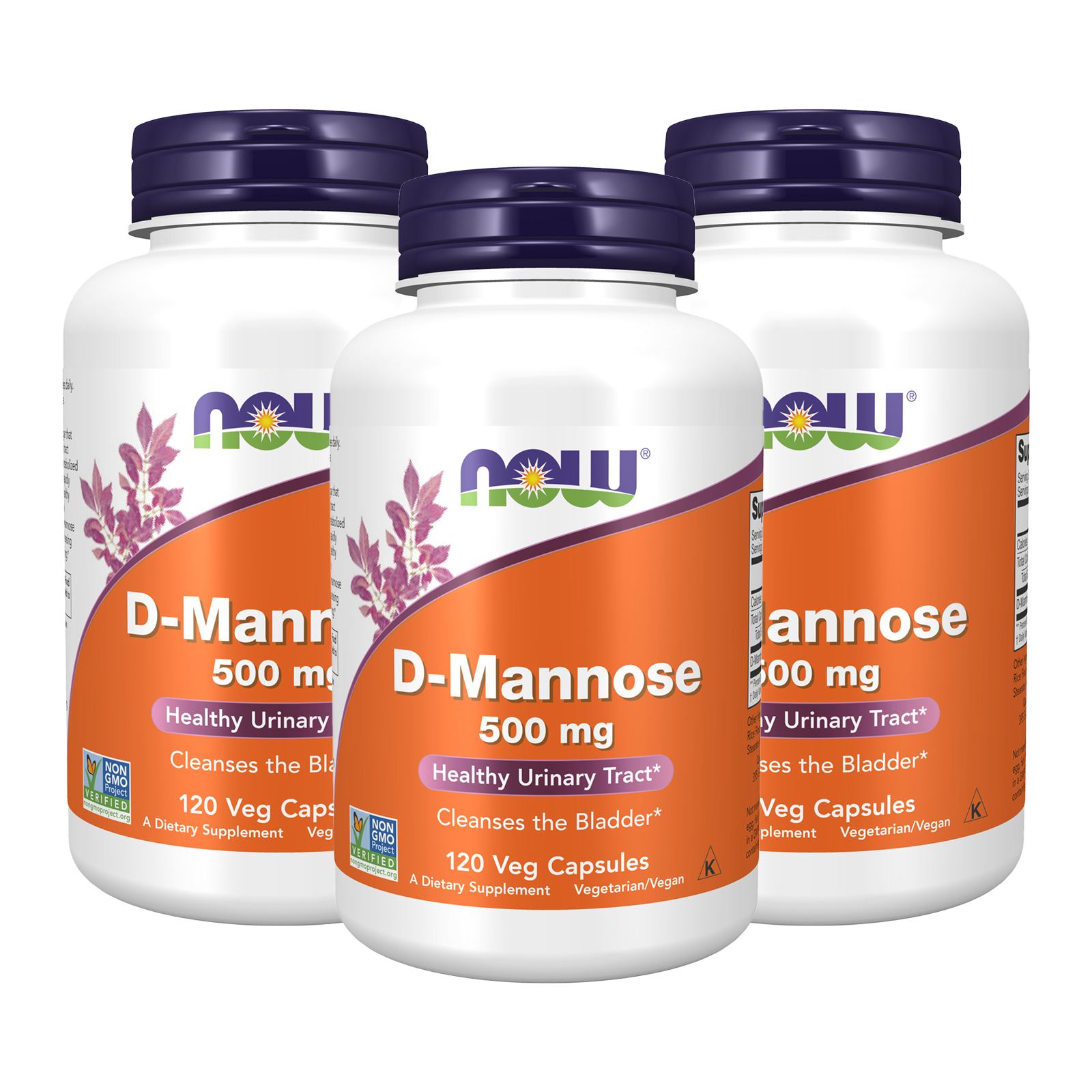 3 X NOW D Mannose 500 Mg 120 Veg Caps