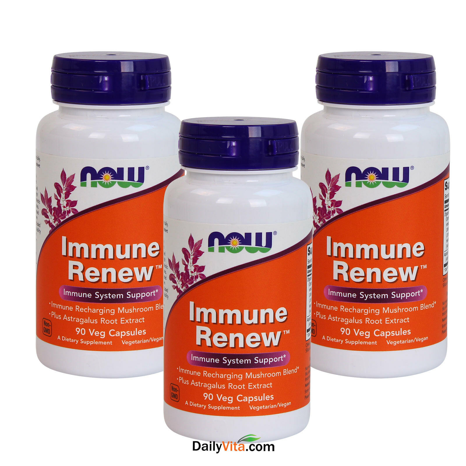 Now® Immune Renew™ is a healthy immune system supporting formulation containing Standardized Astragalus Extract and a High Beta-Glucan Proprietary Mushroom Blend. Astragalus has been shown in non-clinical studies to support a number of aspects of healthy immune function, including the enhancement of T-Cell and Natural Killer Cell activity. Natural killer cells are so named because they destroy unhealthy cells in the body virtually on contact. Now's Proprietary Blend of eight organic mushrooms provides additional healthy immune support due to its high 1,3 Beta Glucan content. 1,3 Beta Glucans are especially valuable to healthy immune system response, though they're increasingly lacking in today's typical diet. Scientific studies have demonstrated that the 1,3 form of Beta Glucan found in mushrooms possesses remarkable abilities to support both innate and adaptive healthy immune function. A healthy immune system is the foundation of good health. Use Now® Immune Renew™ to help support healthy immune function throughout the year. Suggested Use: As a dietary supplement, take 1 Vcap® 1-2 times daily. Consider taking this product in combination with Now® Gr*-Dophilus™, AlliBiotic CF™ and Super Colostrum. Free of: sugar, salt, starch, wheat, gluten, corn, soy, milk, egg, shellfish or preservatives. Vegetarian/Vegan Product. Other Ingredients: Cellulose, Cellulose (capsule), Silica and Magnesium Stearate (vegetable source). Made In U.S.A *This statement has not been evaluated by the Food and Drug Administration. This product is not intended to diagnose, treat, cure or prevent any disease. Keep out of the reach of children. in a cool dry place, tightly closed.
