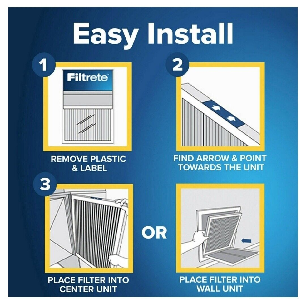 Filtrete™ MPR 1600 Air Filter, made by 3M, captures 2x the bacteria and virus particles (1) from your household air to contribute to a cleaner, fresher home environment. Designed with exclusive Filtrete™ 3-in-1 technology, including a high MPR 1600 and MERV 12 rating, your AC filter will help pull and capture countless microparticles – such as pet dander, smoke, bacteria and up to 55% of virus airborne particles (2) – while letting cleaner air flow through. Your Filtrete™ Filter will also capture large particles, including lint, pollen and household dust. This filter is also CERTIFIED asthma and allergy-friendly® (3). Use a 3-month pleated 1-inch home HVAC filter in your furnace, air conditioner or HVAC system. Four come in a pack, so keep some filters as backup, or use them in multiple areas. For optimal performance of your heating and cooling system or HVAC system, change your furnace filter at least every 90 days. Note: For easy replacement reminders, create a change countdown in the Filtrete™ Smart App. Simply use the app to scan the barcode on your filter’s packaging, then choose 30, 60 or 90 days for your replacement countdown. When the filter’s life is up, you’ll get a notification to change your filter. The No. 1 Recommended HVAC Air Filter Brand (4), Filtrete’s™ Home Air Filters provide the breakthrough technology needed to change how we clean our air, by filtering out particles both large and invisible, to create a cleaner, healthier home for ourselves and our families. Residential use only. (1) Compared to Filtrete™ MPR 300 capture capability from the air passing through the filter. (2) Based on airborne MS2 virus testing. Initial efficiency. (3) As outlined in report ASCR: 1246-01. (4) Based on the 2022 Ipsos US Brand Health Study of Residential HVAC Air Filters.