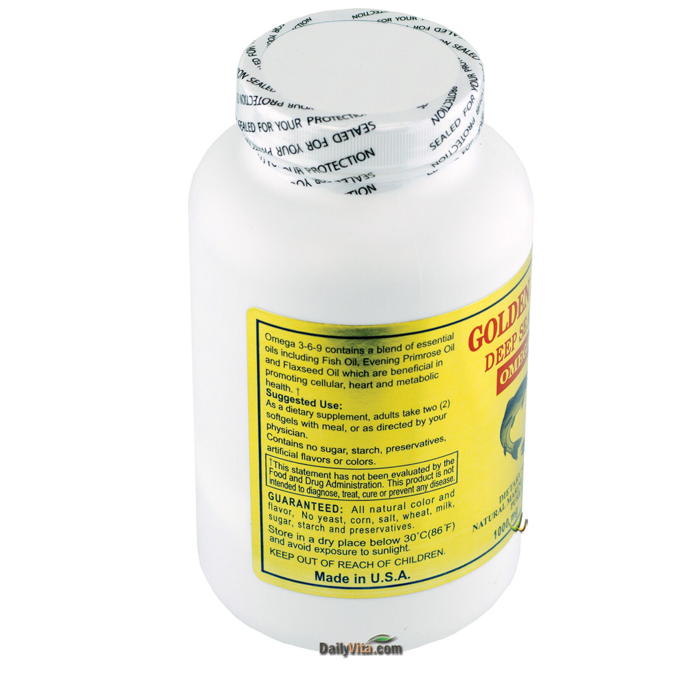 Golden Alaska Deep Sea Fish Oil is kNown for being rich in unsaturated fatty acids and provides rich OMEGA-3 fatty acids, (Pure EPA 180mg/DHA 120mg). Great Sea Alaska Deep Sea Fish Oil are made from natural marine lipid concentrate and may help reduce or inhibit risk factors involved in cardiovascular disease, as well as inflammatory and immune disorders. Long term use of Golden Alaska Deep Sea Fish Oil help prevent menopausal symptoms, promote better circulation, lower cholesterol, prevent blood clots, reduce heart related risk, and the pain of arthritis. Omega-3 and polyunsaturated fatty acids found in fish and golden alaska deep sea fish oil help to protect against heart and blood vessel disease. Natural, essential fatty acids are essential to normal human cell and tissue growth and maintenance. If not found regularly in the diet, the diet must be supplemented. These fatty acids are especially abundant in brain cells, nerve relay stations (synapses), visual receptors (retinas), adrenal glands, and sex glands. The most biologically active tissues in the body. Each capsule is certified to contain no artificial preservatives, coloring, or flavors. Also sugar, starch, yeast and wax free. Recommended Use: Take one fish oil capsules with meals per time, twice per day as a dietary supplement, or as directed by your physician.