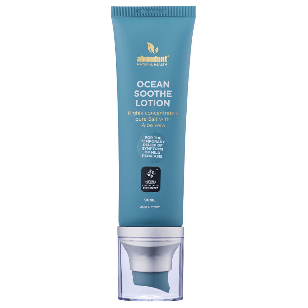 100% natural formulation high in salt and Magnesium infused with olive oil and aloe vera to hydrate, soothe, and soften the skin. Fast absorption, odorless, and non-staining to clothing. Symptomatic relief of problematic skin: Itching Peeling, Scaling, and Crusty Skin Inflammation Irritation Dryness To optimize results we recommend combining the Ocean Soothe® Gel (for use during the day) and the Ocean Soothe® Lotion (for use at night). Australian-owned, grown, and made. 100% natural ingredients, with organically certified Magnesium from EcoMag. AUST L 317787 ACTIVE INGREDIENT: Sodium Chloride 41.69mg/g OTHER INGREDIENTS: Purified Water, Magnesium Chloride, Olive Oil, Emulsifying Wax, Benzyl Alcohol, Aloe Vera, Dehydroacetic Acid DIRECTIONS: Apply liberally to affected areas in the evening before bed. Massage into the skin until thoroughly absorbed. Continue use of the product on areas that have healed for flare-up prevention. CPP