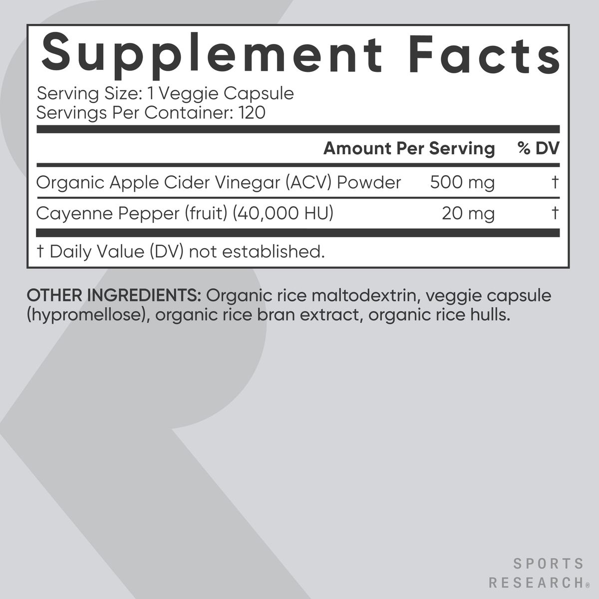 - Contains 500mg of fermented Organic Apple Cider Vinegar