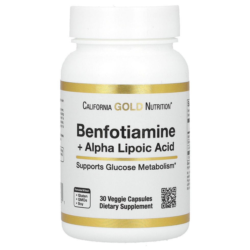 Supports healthy metabolism of glucose in the body* Plus Alpha Lipoic Acid and L-Leucine Suitable for Vegetarians and Vegans California Gold Nutrition® Benfotiamine + Alpha Lipoic Acid combines two powerful ingredients in one, pairing benfotiamine with alpha lipoic acid. iTested VerifiedSUGGESTED USE: