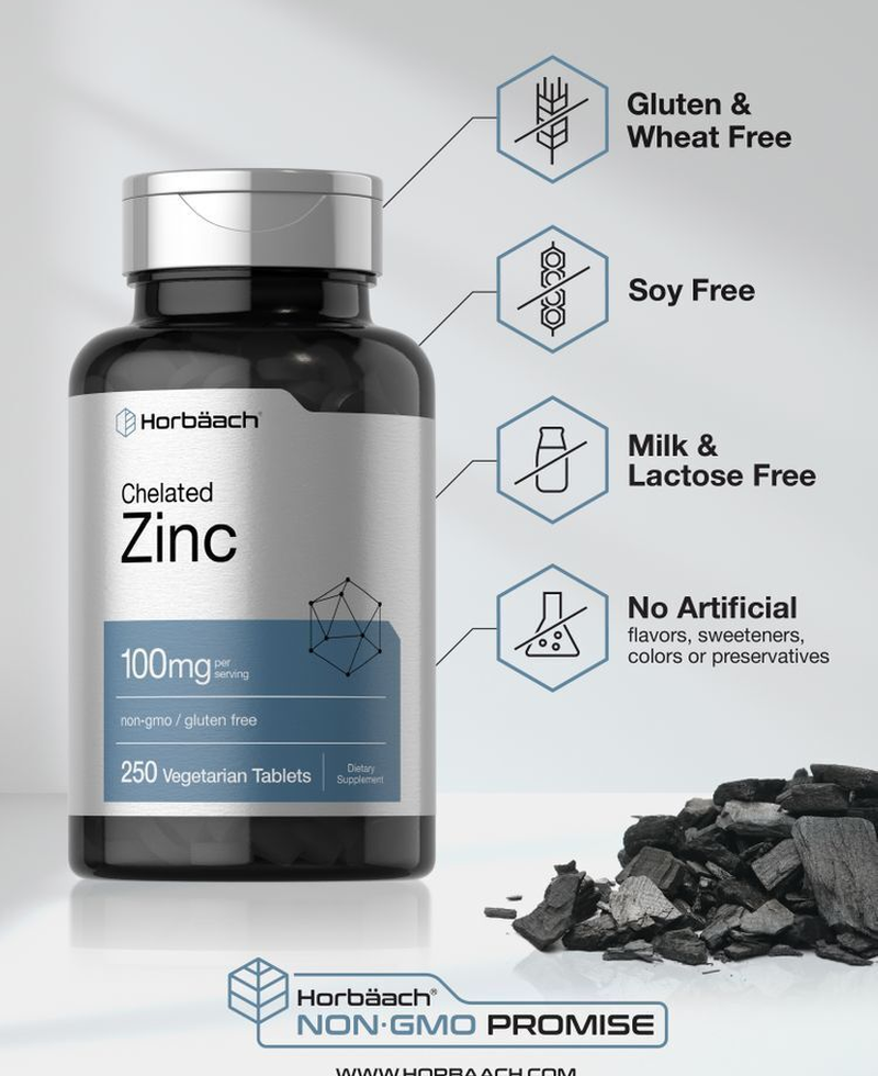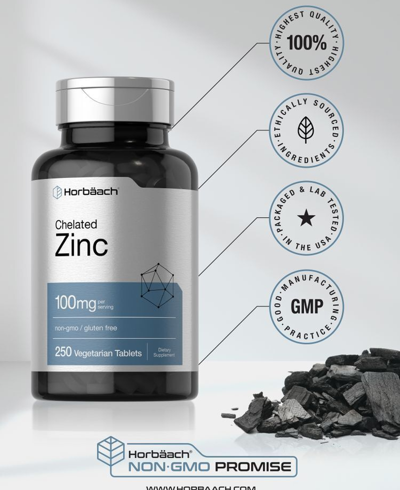 Chelated Zinc Supplement 100Mg | 250 Tablets | High Potency | by Horbaach