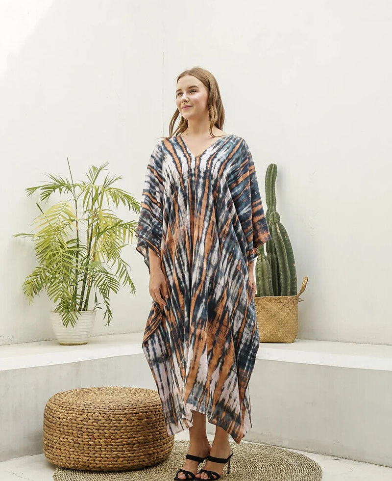 “Eco-Chic Shibori Kaftans: Handmade Sustainable Artistry for Women”