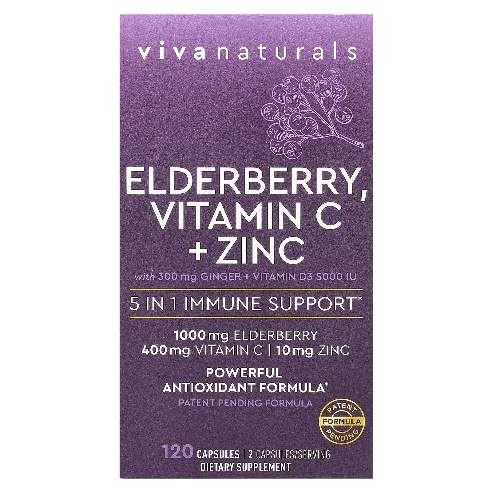 Elderberry, Vitamin C + Zinc, 120 Capsules