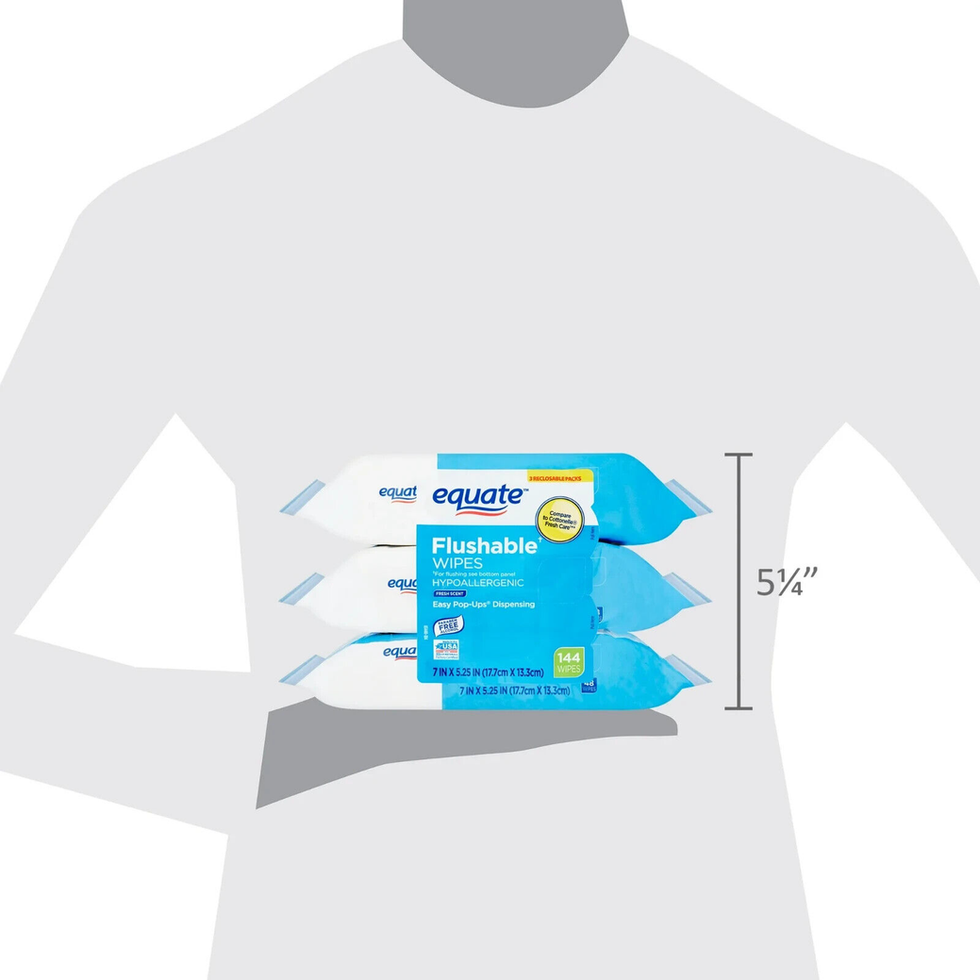 - Equate Fresh Scent Flushable Wipes, 3 Packs of 48, 144 Total Wipes
