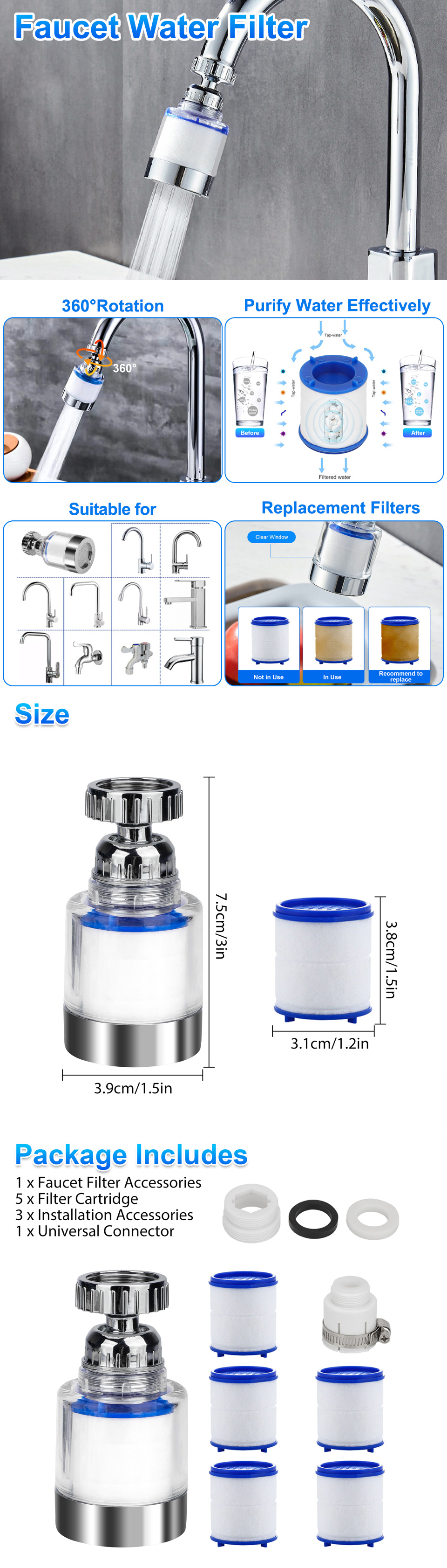 Product Specification | Type | Faucet Water Filter | | Color | Silver | | Qty | 10pcs | | Material | ABS | | Style | Faucet extender | Package Included - ๐1 x Faucet Filter Accessories