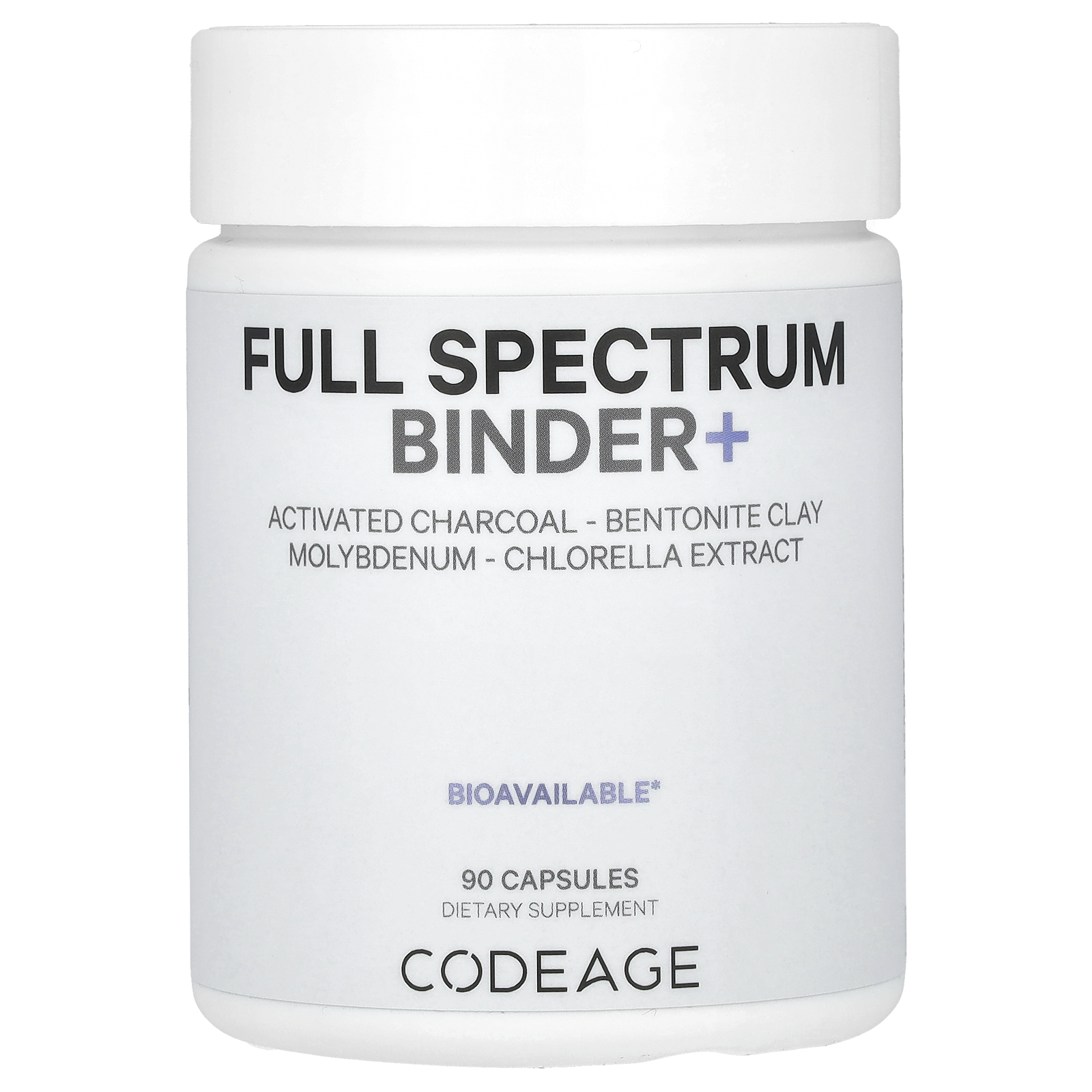 Activated Charcoal - Bentonite Clay Molybdenum - Chlorella Extract Bioavailable Dietary Supplement Fulvic & Humic Acid Albion® Molybdenum Proprietary Blend Vegan Non-GMO Soy-Free Dairy-Free Gluten-Free cGMP Certified Manufacturing Feel Different Codeage Full Spectrum Binder+ supplement leverages the synergy of molybdenum, activated charcoal, and bentonite clay for overall wellness support. Enriched with fulvic and humic acid and organic extracts for superior benefits.SUGGESTED USE: