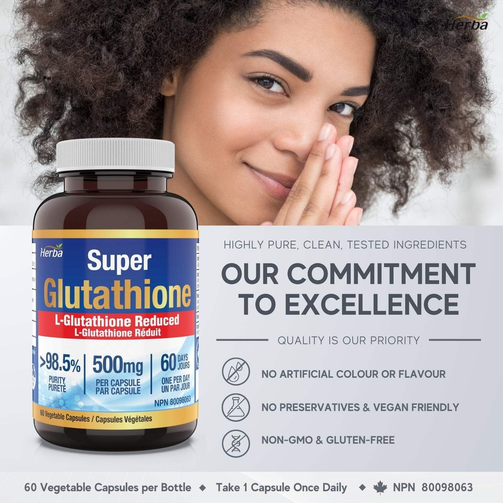 Glutathione, a powerful antioxidant naturally present in our cells, plays a crucial role in protecting the body against oxidative stress and free radicals. It supports detoxification processes, enhances immune function, and contributes to overall cellular health. With its ability to neutralize harmful substances, glutathione is essential for maintaining good health and vitality. NPN: 80098063Glutathione Supplements 500mg, 60 Vegetable Capsules-L-Glutathione Reduced Active Form