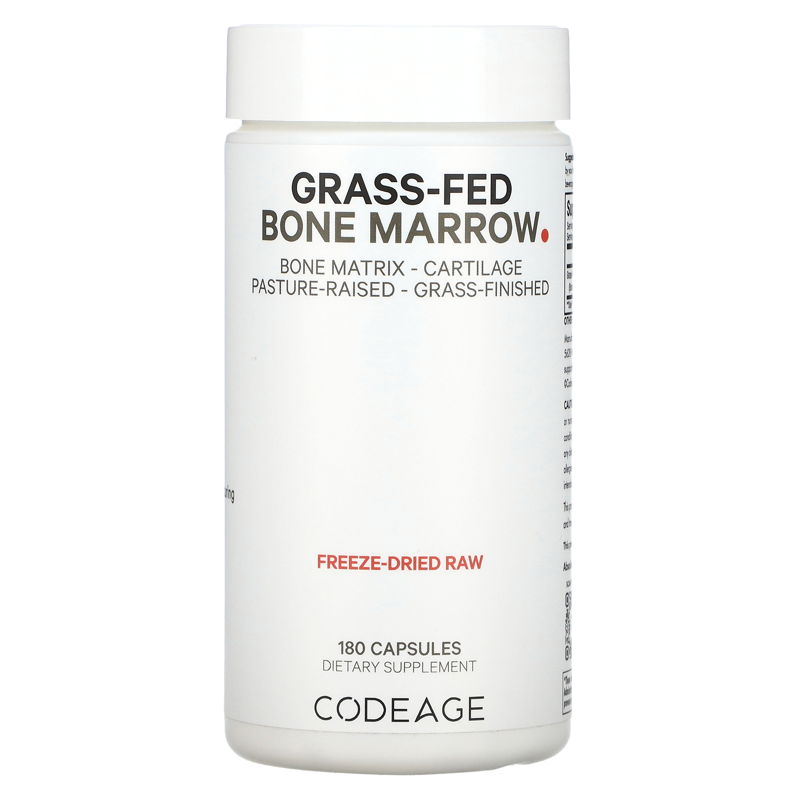 Bone Matrix Cartilage Pasture-Raised Grass-Finished Freeze-Dried Raw Dietary Supplement Gluten Free Non GMO cGMP Certified Manufacturing Hormone-Free Pesticide Free Superfood Grass-fed Argentinian beef bone marrow supplement is made with bovine bone marrow, bone matrix, and cartilage to provide nutrients and vitamins found in the bone.SUGGESTED USE: