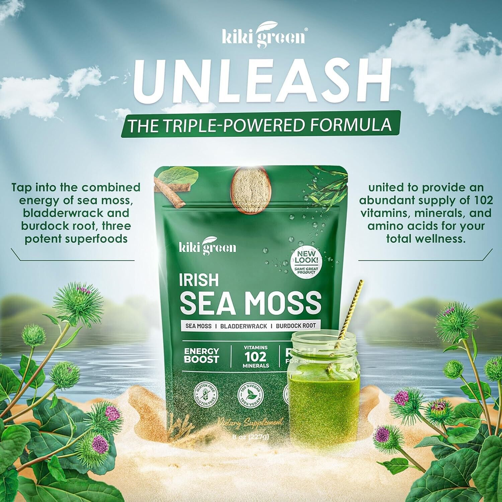 - By Taking Our Sea Moss Powder You Will Allow Your Body To Serve You Longer And More Efficiently . If You Want To Boost Your Immune System And Look And Feel Great, KIKI Green Highly Recommends Adding Irish Moss To Your Skin And Hair Nutrition
