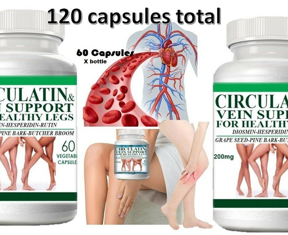 2 BOTTLES CIRCULATIN VEIN SUPPORT FOR HEALTHY LEGS ( 60 CAPSULES EACH BOTTEL , TOTAL 120 CAPSULES)