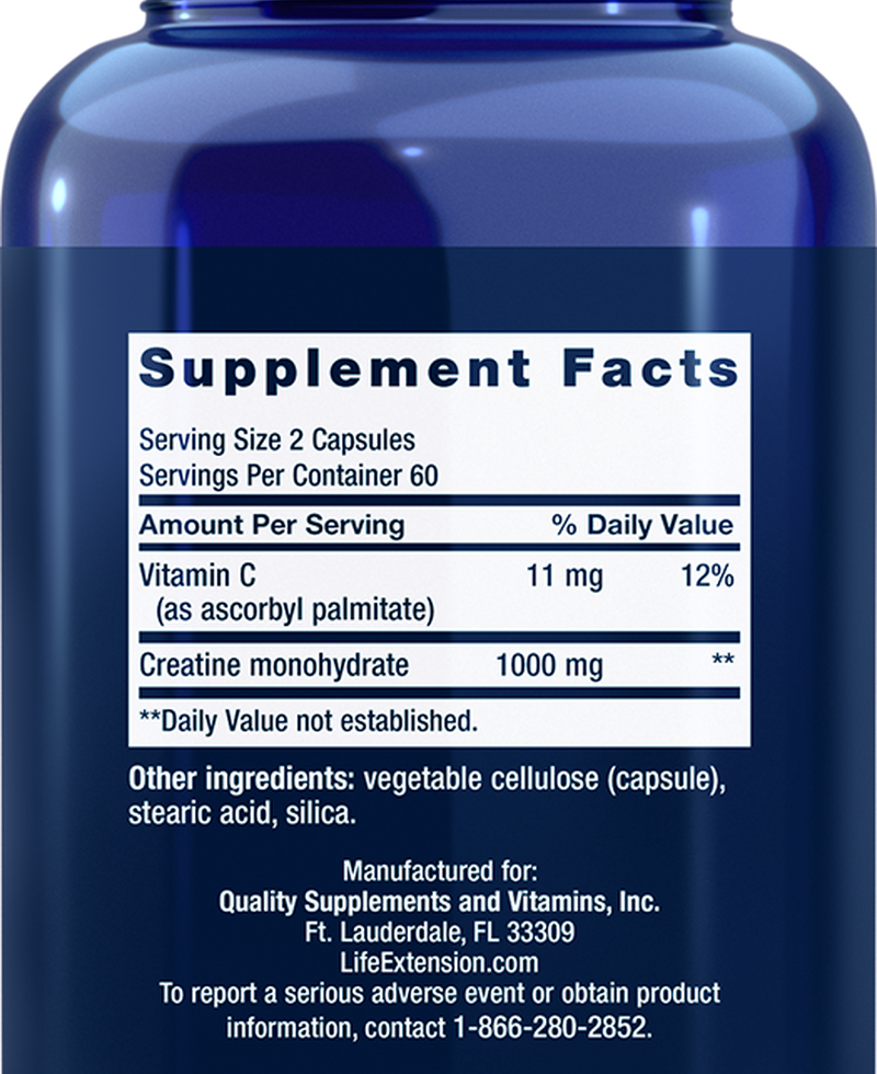 Life Extension Creatine Capsules 120 Caps Creatine 1000Mg/Vitamin C 11Mg