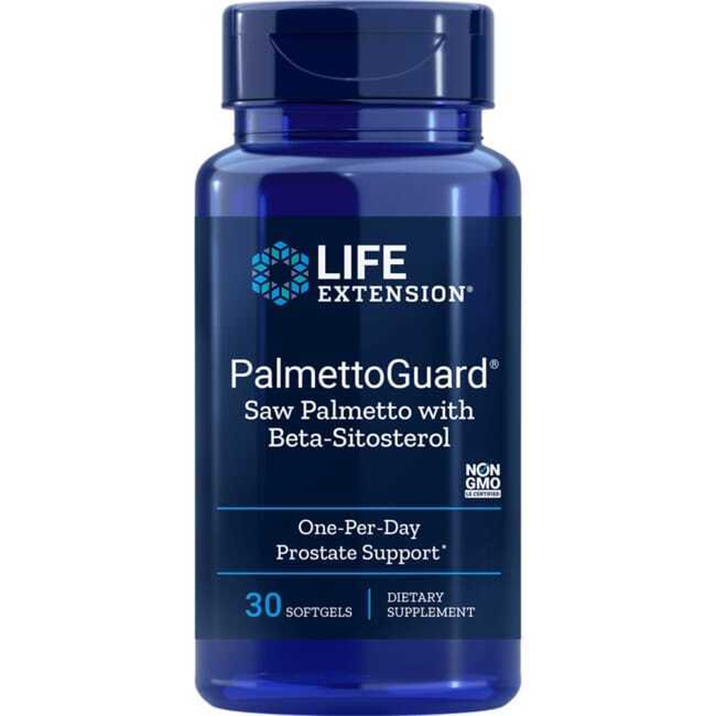 div>Support healthy prostate function with Life Extension PalmettoGuard(TM) Saw Palmetto with Beta-Sitosterol. Each serving of PalmettoGuard(TM) delivers 320 mg of saw palmetto extract, which is standardized to include a minimum of 272 mg of total fatty acids. PalmettoGuard(TM) also features rosemary extract, boron and beta-sitosterol.