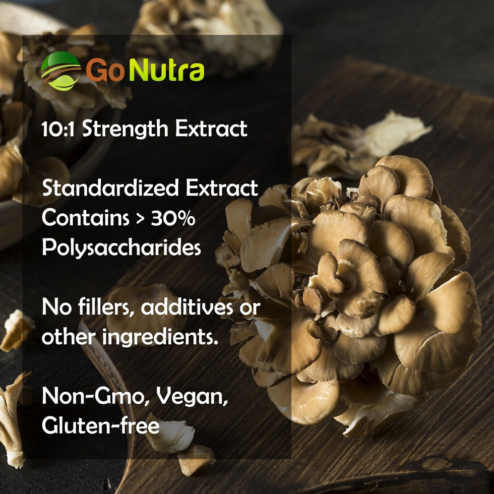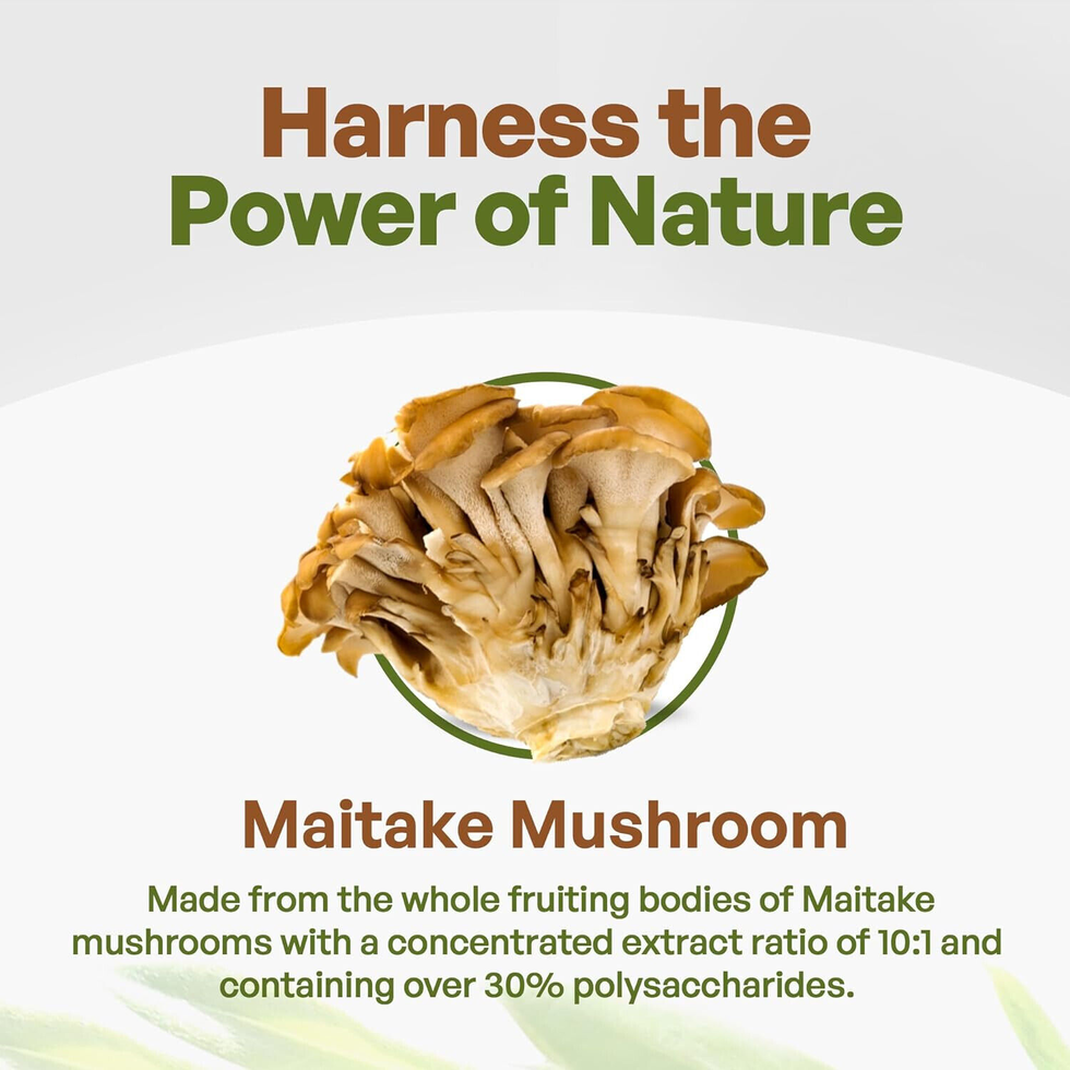 - Mushroom extract powder made from whole maitake mushrooms (fruiting bodies).