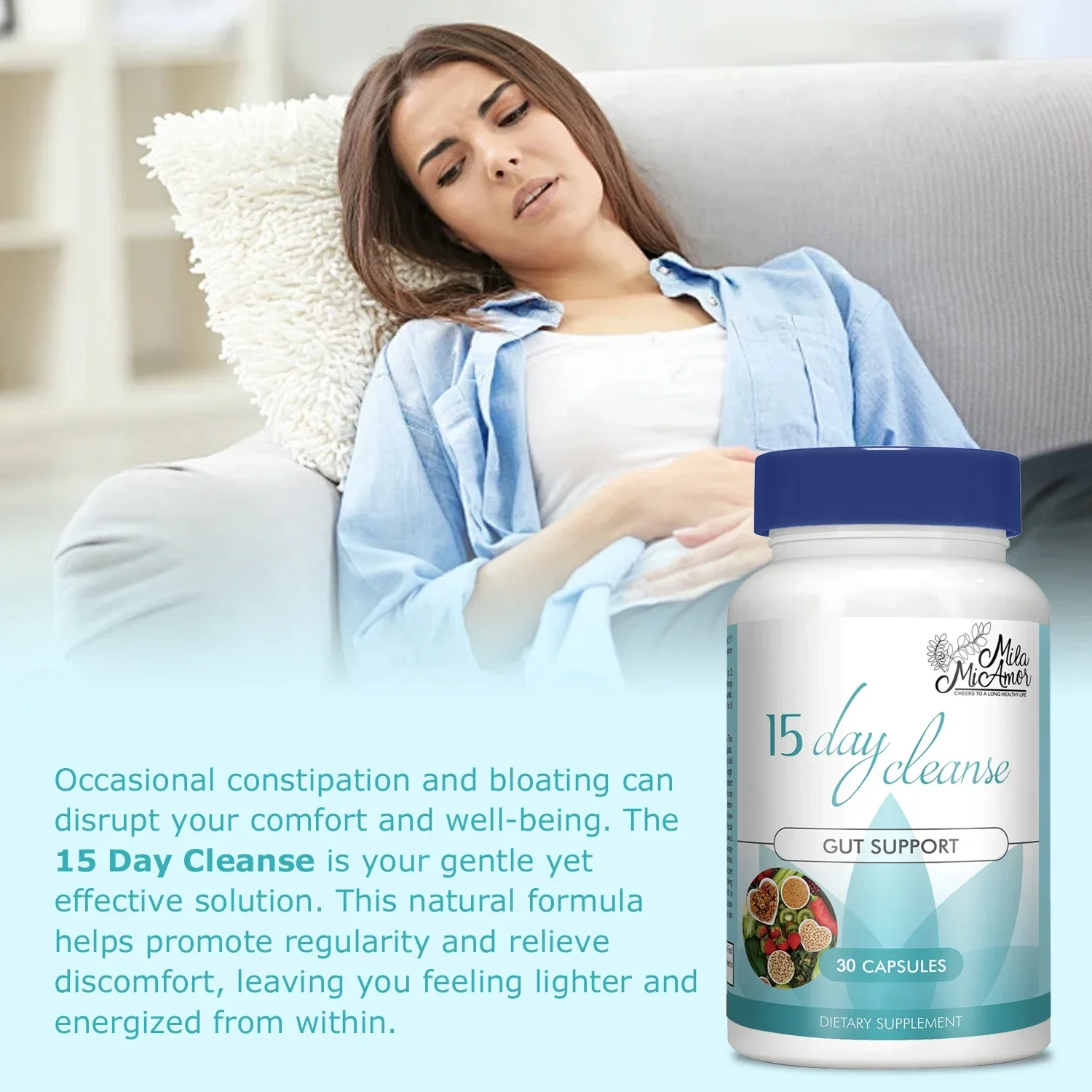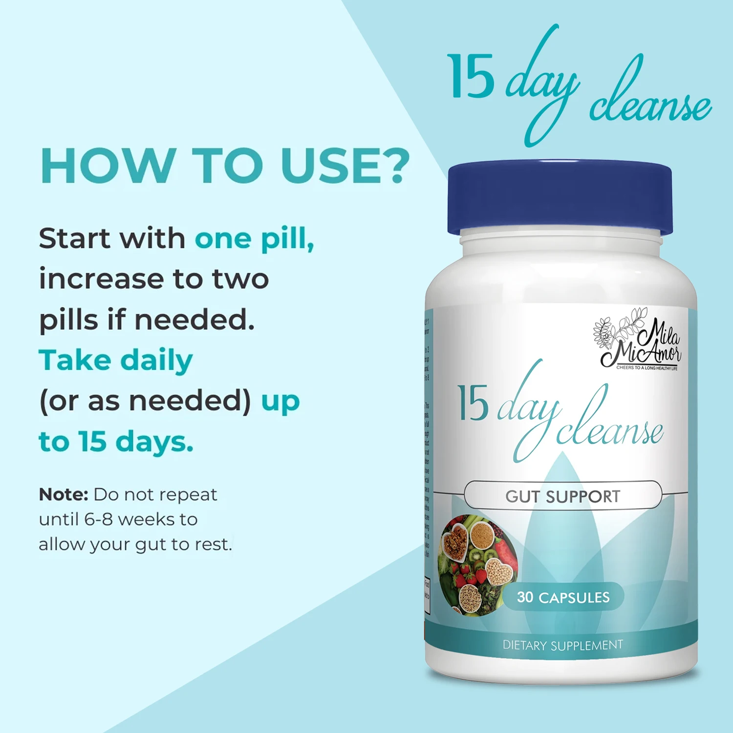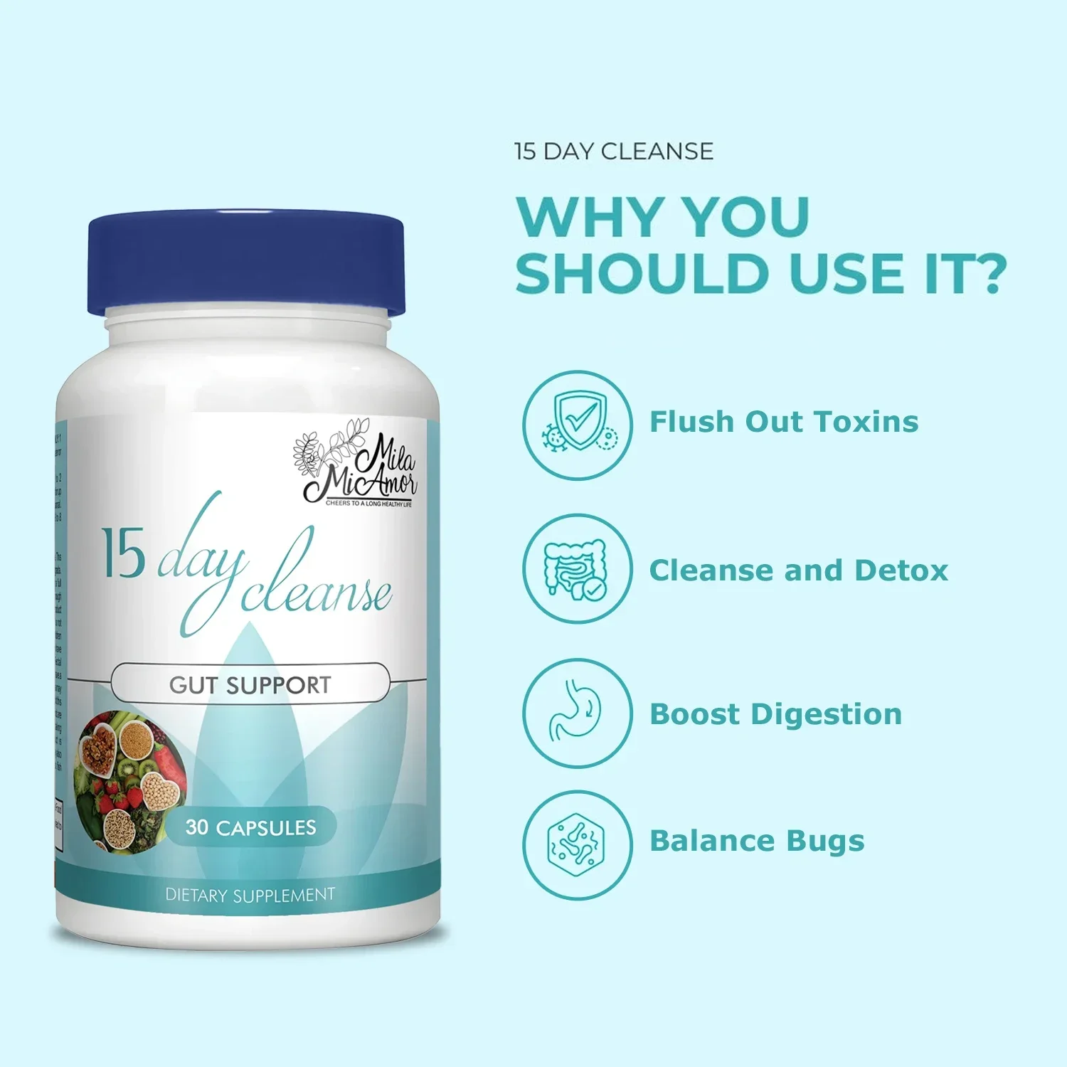 Milamiamor 15 Day Cleanse - Psyllium Husk, Probiotics - Colon Cleanse & Detox