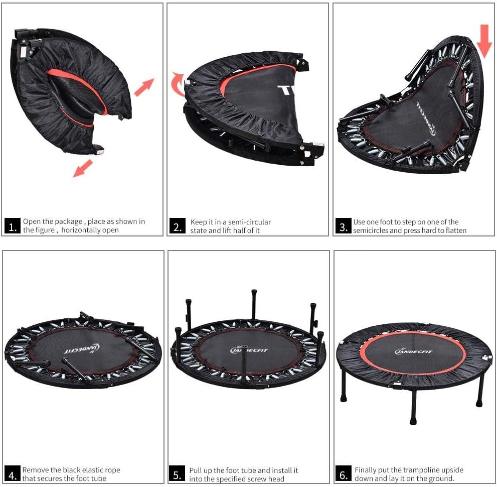 - 【FOLDABLE DESIGN】The unique quarter-folding design of Fitness Rebounder, including the leg tube using folding spring legs, is very easy to assemble and disassemble. After folding, it is small in size and easy to .