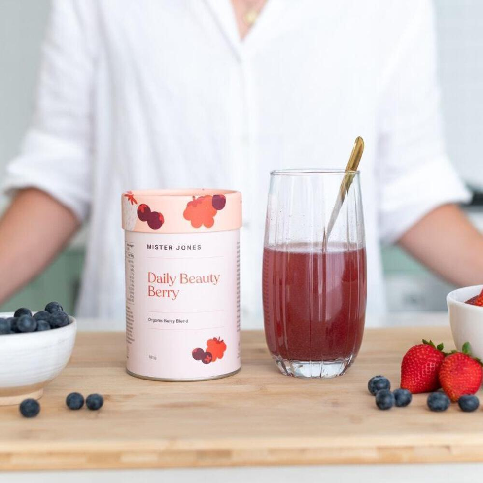 Product Information Sip your way to healthy skin with Daily Beauty Greens™. Crafted by naturopaths, this daily nutrient top-up stirs together vegan collagen boosters for radiant skin; prebiotics, three strains of probiotics, and digestive enzymes to reduce bloating and improve gut health; and organic quinoa sprouts to boost energy production. Putting the ‘Berry’ in Daily Beauty Berry™ is organic acai, strawberry, maqui, blueberry, and goji. Loaded with antioxidants, this powerful blend defends against free radical damage and protects collagen from degradation. The result? A daily glass of health that your skin, gut, and energy levels will love you for. Ideal for anyone looking to live an active, healthy, and full lifestyle. Two sizes available: 30-serves and 15-serves Naturally flavoured by our powerful berry blend Vegan collagen boosters to increase natural collagen production Improve skin bounce & elasticity Strengthen hair, nails, and skin structure Support healthy digestion & toxin elimination Defend against skin-dulling free radical damage and premature ageing Strengthen bones, muscles, and ligaments Formulated with activated B-vitamins to lift energy levels No artificial colours, flavours, or sweeteners 100% vegan friendly – always Free from dairy, soy, gluten, and wheat Directions for Use: Using the 6-gram scoop provided, mix a level scoop of powder with 250ml of water. For best results, use once daily. For those with stomach sensitivity, consumption with food is recommended. Warnings: This product is not intended to treat, cure, or prevent disease. It is not a sole source of nutrition and should be consumed in moderation with a nutritional diet and exercise program. If you are pregnant or breastfeeding, consult your doctor or healthcare professional before using this product. While every effort has been made to remove common allergens, this product may contain trace elements of; gluten, milk, soy, tree nuts, or peanuts as it shares manufacturing equipment with other products. Do not consume if the cap or seal is missing or broken. Storage: Store in a cool dry place below 30ºC. Always seal after use. Use the scoop provided and consume within 90 days after opening. Do not introduce water or moisture to the contents of this package. Ingredients: Organic Acai Berry Juice Powder, Organic Acai Berry Powder, Organic Strawberry Juice Powder, Xylitol, Natural Wild Berry Flavour, Citric Acid, Organic Maqui Berry Powder, Organic Blueberry Juice Powder, Organic Goji Juice Powder, Organic Quinoa Sprouts (Panmol B®), Silica, Proline, Glycine, Organic Jerusalem Artichoke (Inulin), Stevia, Zinc Glycinate, Vitamin C, Bifidobacterium Longum, Lactobacillus Acidophilus, Bifidobacterium Lactis, Digestive Enzymes, Selenium. CPP