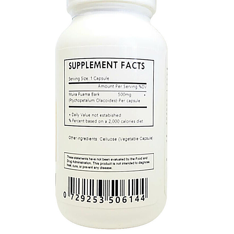 Muira Puama Bark caps - 120 Count 500Mg Each -