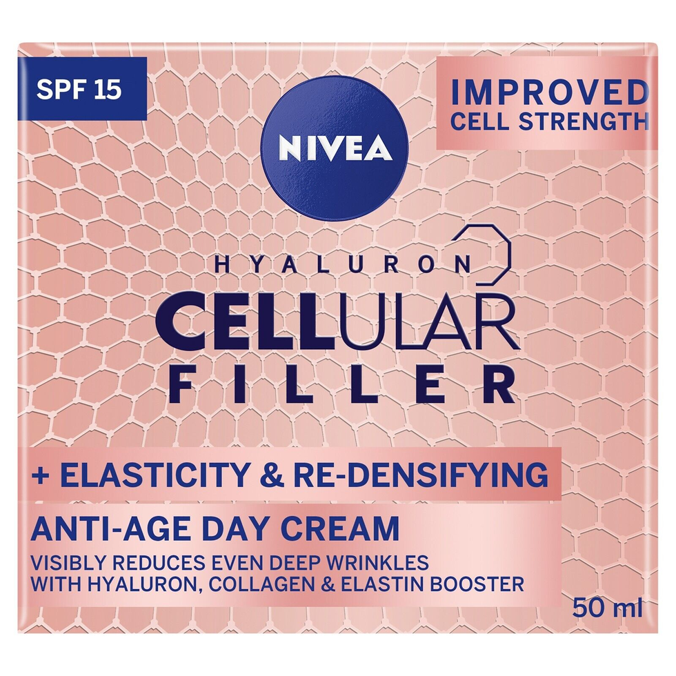 Instantly and with regular use, the NIVEA Cellular Hyaluron Filler + Elasticity & Re-Densifying Day Cream provides an intense anti-wrinkle effect. It improves elasticity and rebuilds skin’s strength. Its powerful actives activate skin cells own production of hyaluronic acid, collagen and elastin. The SPF15 UVA&UVB protection system helps to protect skin from UV-induced photo-ageing, cell damage, age spots and skin sagging. The velvety, rich texture softly melts into the skin and is quickly absorbed, providing 24hr moisture and an immediate sensation of skin comfort without any sticky feeling.