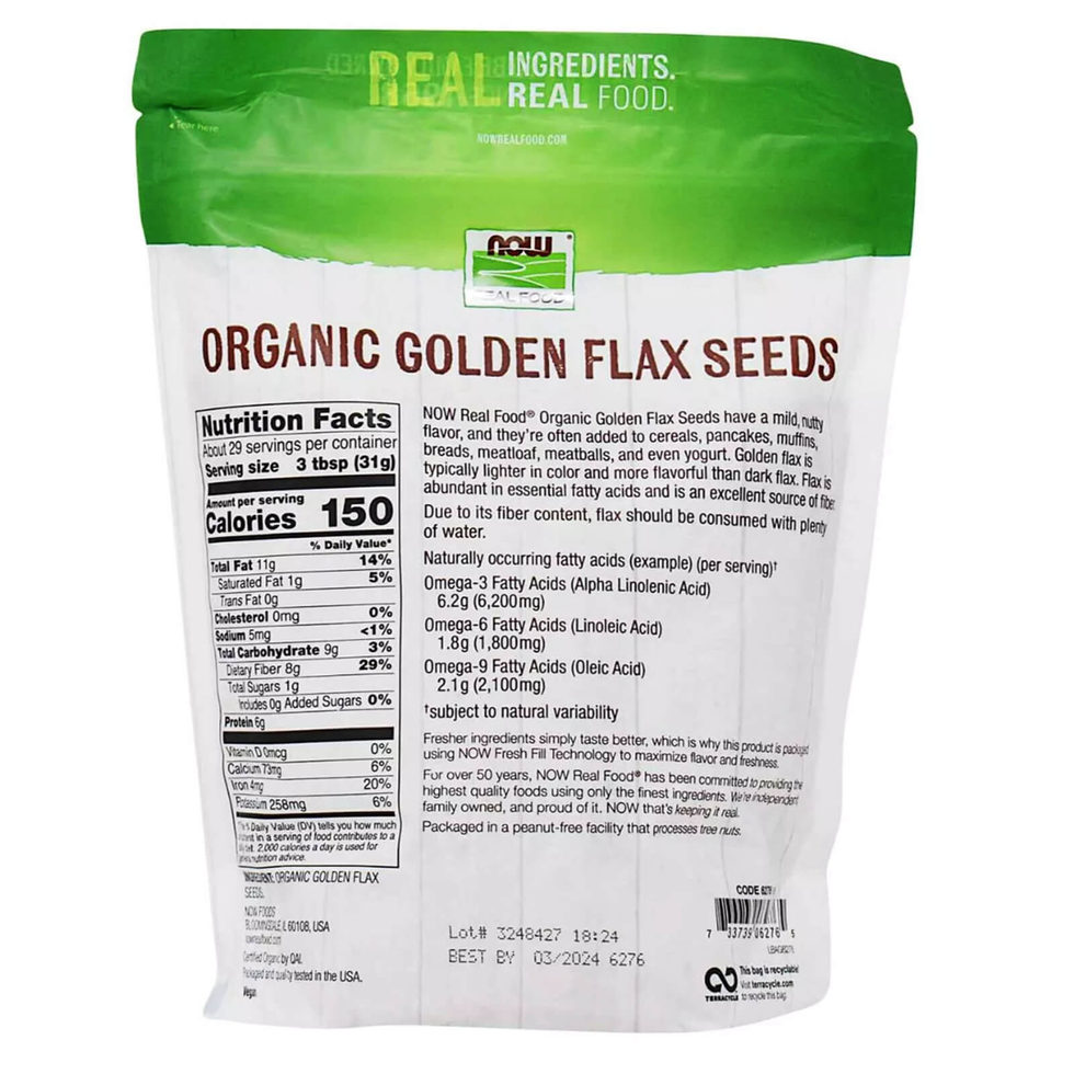 NOW FOODS Golden Flax Seeds Organic 32 Oz