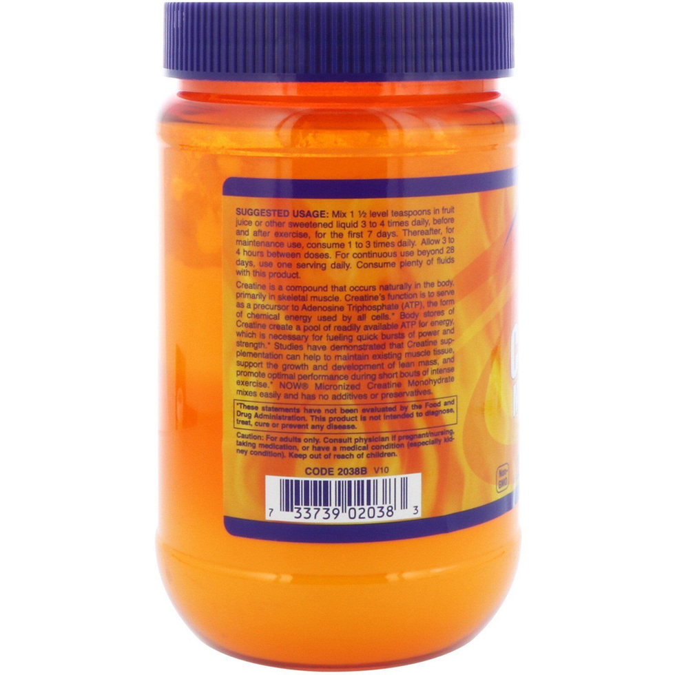 Mass Building / Energy Production Pure Powder Muscle Fuel Lean Mass A Dietary Supplement Vegan Kosher Non-GMO GMP Quality Assured Creatine is a compound that occurs naturally in the body, primarily in skeletal muscle. Creatine's function is to serve as a precursor to Adenosine Triphosphate (ATP), the form of chemical energy used by all cells. Body stores of Creatine create a pool of readily available ATP for energy, which is necessary for fueling quick bursts of power and strength. Studies have demonstrated that Creatine supplementation can help to maintain existing muscle tissue, support the growth and development of lean mass, and promote optimal performance during short bouts of intense exercise. NOW® Creatine Monohydrate mixes easily and has no additives or preservatives.SUGGESTED USE:
