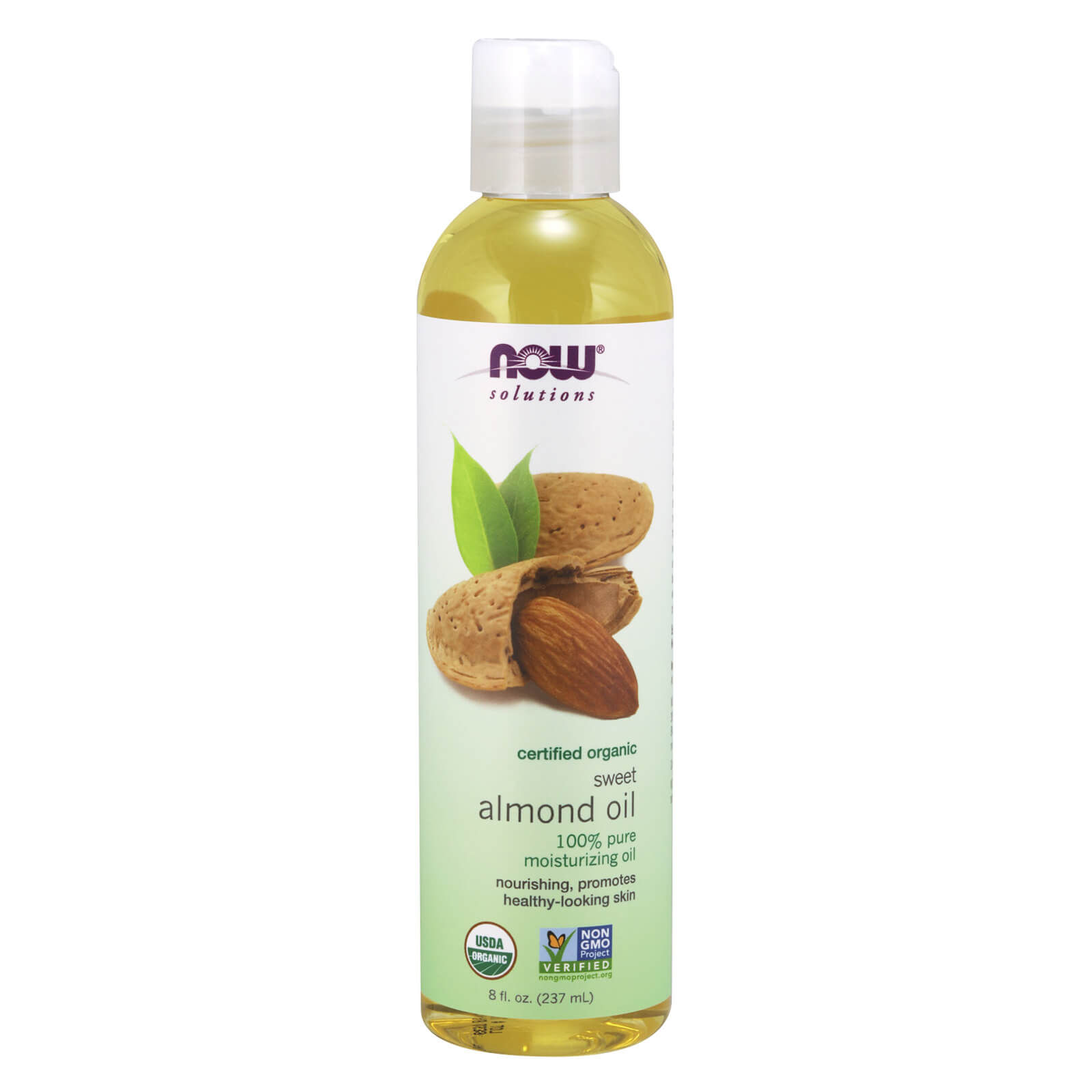 Condition: For skin in need of nourishment, as a moisturizer or for massage. Solution: Certified Organic Almond Oil is a oil from nature that's perfect for nourishing and reviving any skin type. Almond Oil is easily absorbed and won't clog pores, promoting clear, soft, healthy-looking skin. This natural skin-nourishing oil is ideal for the entire body. Almond oil is derived naturally from pressed almonds. Vegetable-derived oils date back to Biblical times when they were mixed with fragrant herbs to create traditional ointments. Clear bottle contains UV light protectant. NOW® Solutions products are not tested on animals.
