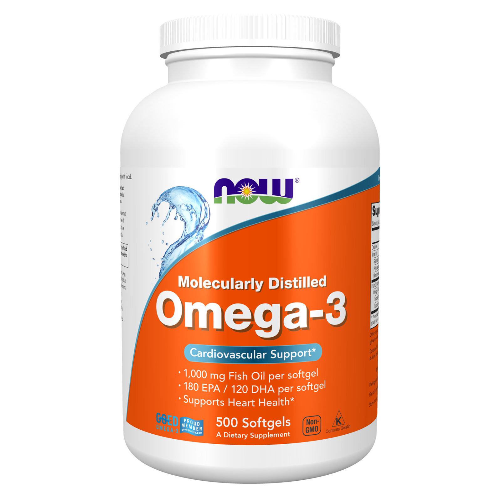 NOW Omega-3 Fish Oil Molecularly Distilled 500 Softgel, Cardiovascular Support
