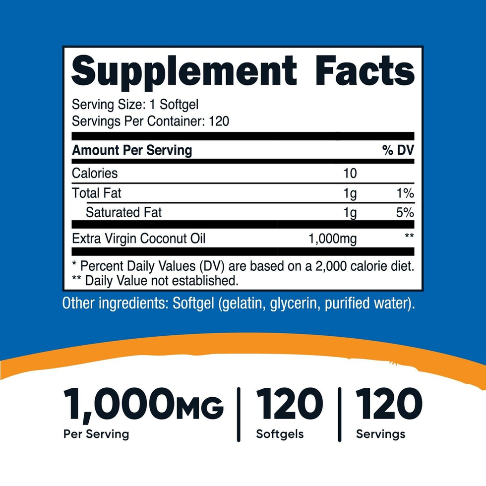 - 1000 mg of Coconut Oil Per Serving