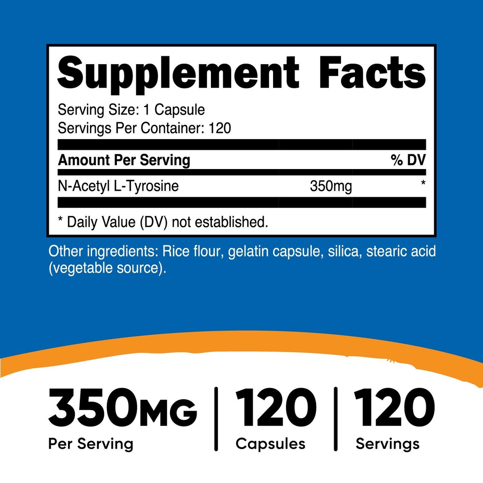 Nutricost N-Acetyl L-Tyrosine (NALT) 350Mg, 120 Capsules - Gluten Free, Non-Gmo