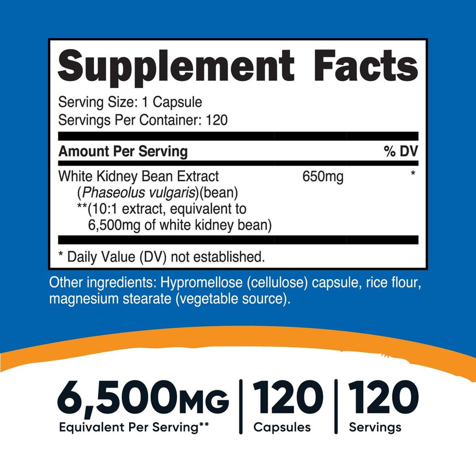 Nutricost White Kidney Beans Capsules 650Mg 120 Capsules - Gluten Free