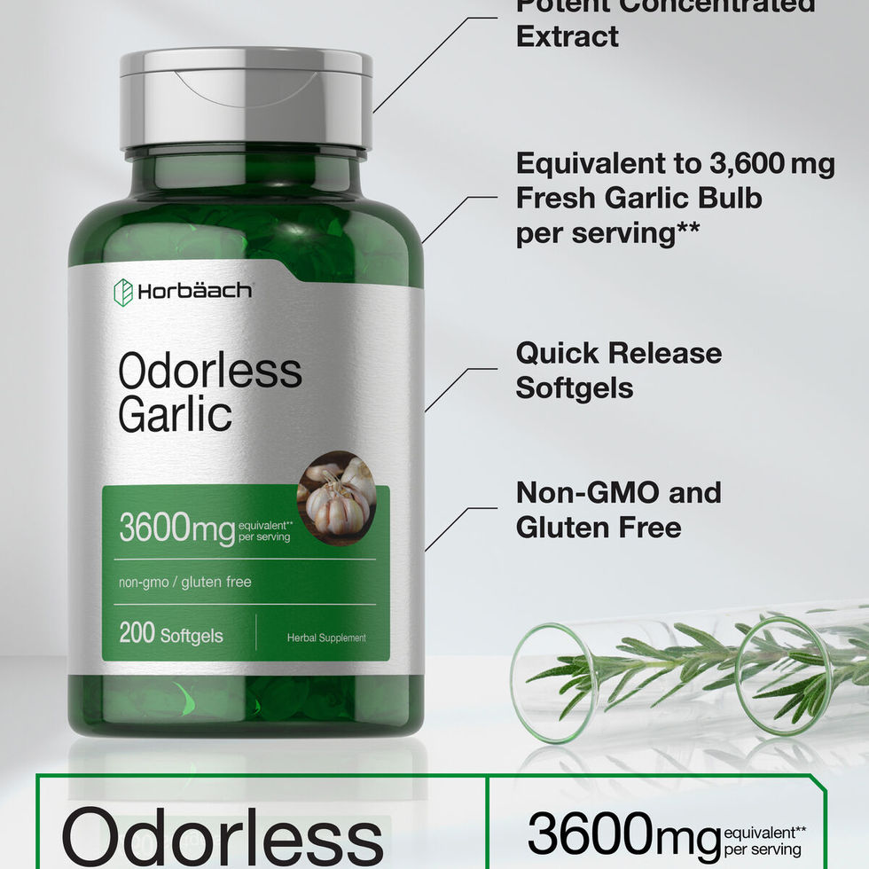Odorless Garlic Pills 3600 Mg | 200 Softgel | Ultra Potent | by Horbaach