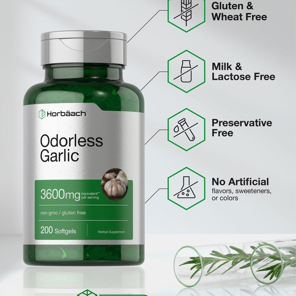 Horbaach Odorless Garlic is made from a premium source of fresh garlic, designed to bring you the benefits without any odor! Our gluten-free and non-GMO formula features the equivalent of 3,600 mg of Garlic per serving in quick-release softgels for maximum support. We test our Garlic to meet our exceptional standards of quality, always bringing you the best supplements you deserve.