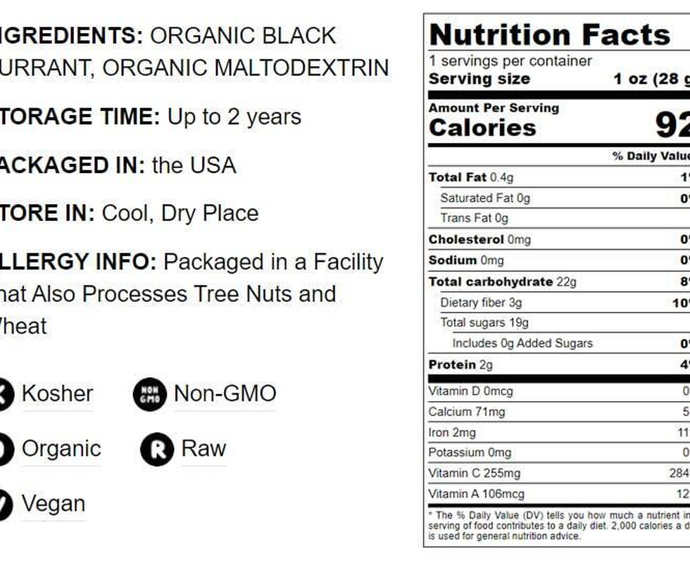 Organic Black Currant Powder - Non-Gmo, Kosher, Raw, Vegan, Bulk - Food to Live