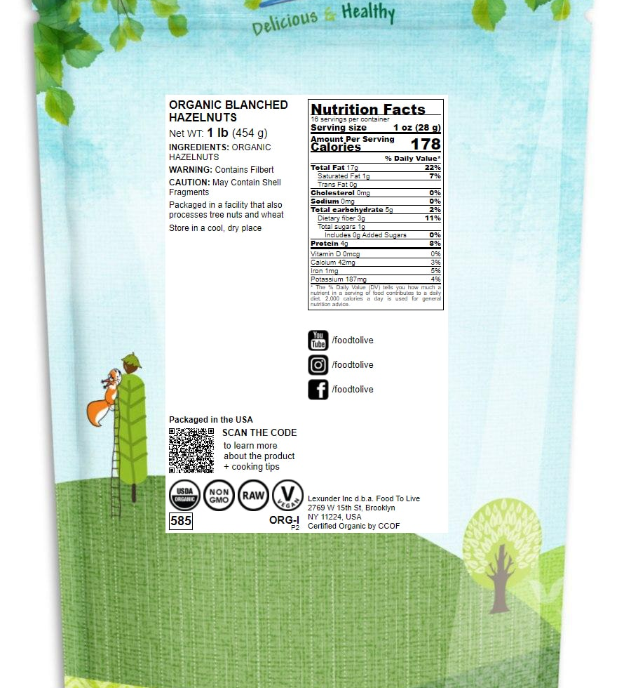Organic Blanched Hazelnuts – Non-Gmo, Unsalted, Unroasted, Vegan, Kosher