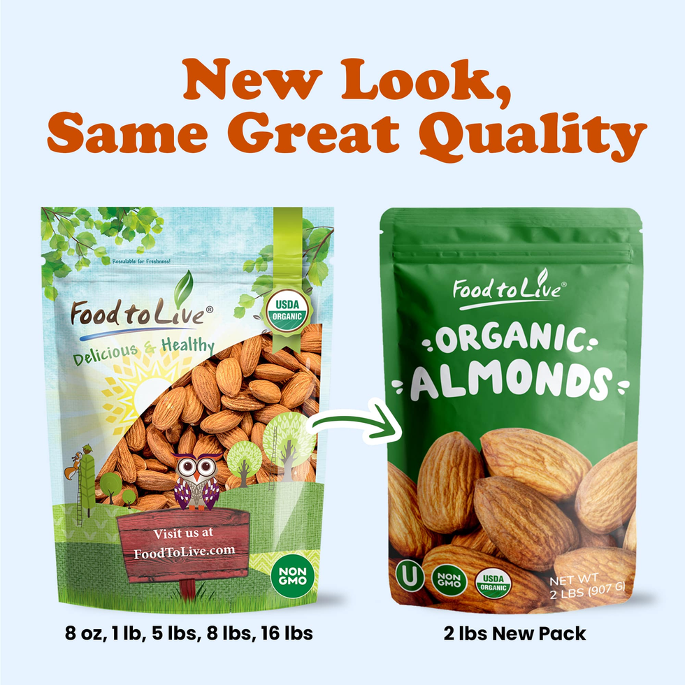 Food to Live Almonds are grown, produced and packaged domestically in California. They are Organic, Non-GMO, Kosher, Raw, and suitable for those who follow Vegan, Keto, or Paleo diets.