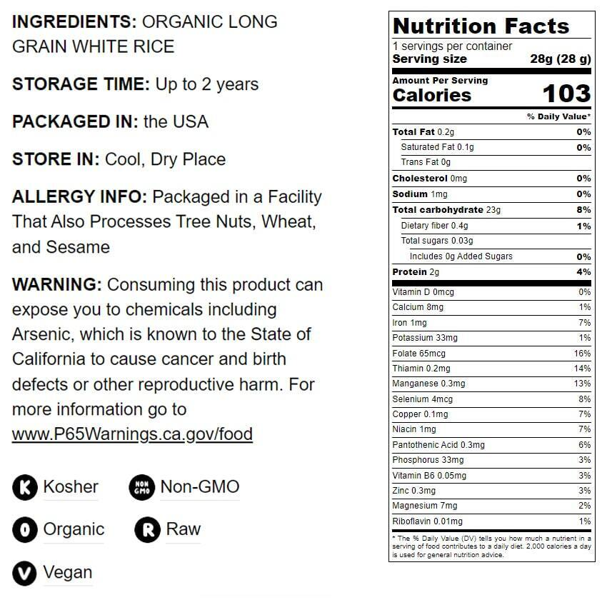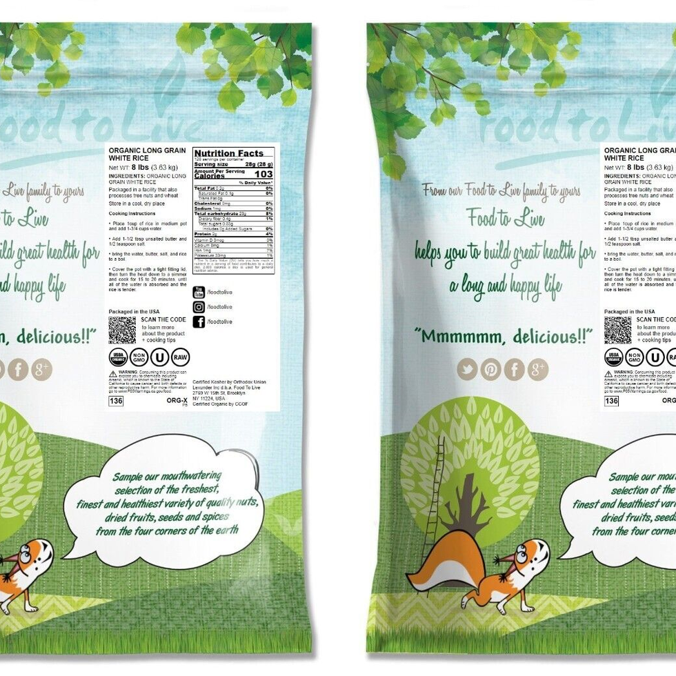 Organic Long Grain White Rice — Non-Gmo, Kosher, Raw,Vegan, Bulk — Food to Live