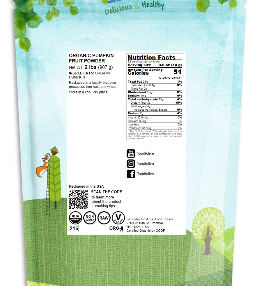 Buy more and pay less per unit for high-protein organic pumpkin flour by Food to Live. Store in a cool, dry place (best is an airtight container) to prolong the shelf life and enjoy one of the market-leading products throughout the year.