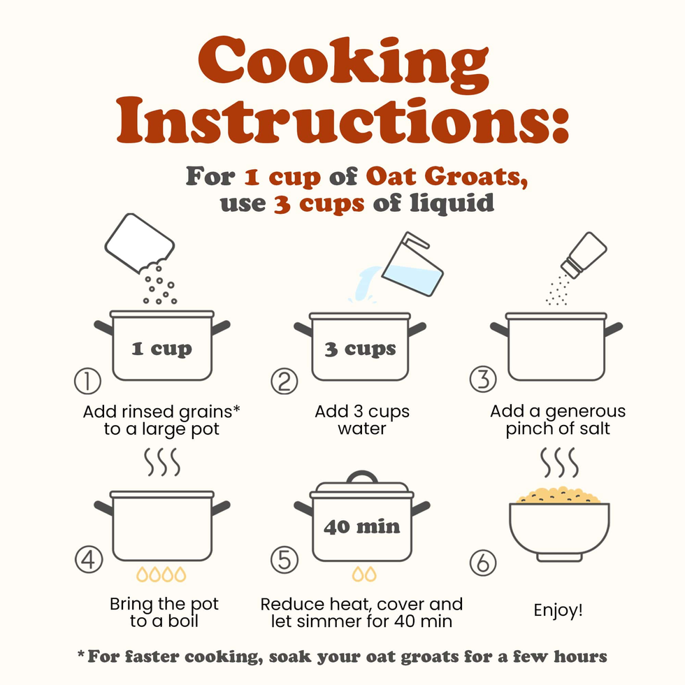 SOURCE OF ESSENTIAL MINERALS: Cooked organic oat groats give you calcium, iron, magnesium, and zinc.