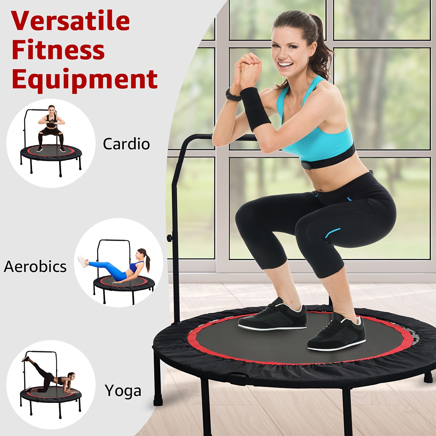 Rebounder- Fitness Rebounder Trampoline - Adjustable Handle