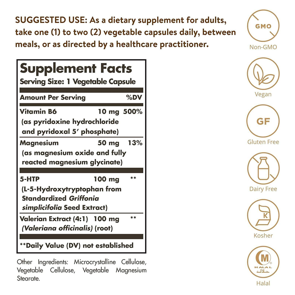 - Gluten, Wheat & Dairy Free; Solgar 5-HTP is non-GMO, vegan, kosher, , and free of: gluten, wheat, dairy, soy, yeast, sugar, sodium, artificial flavor, sweetener, preservatives, and color