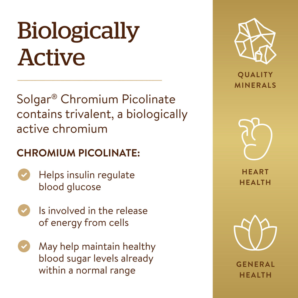 - Gluten, Wheat & Dairy Free; Solgar Chromium Picolinate is vegan, kosher, and free of: gluten, wheat, dairy, soy, yeast, sugar, sodium, artificial flavor, sweetener, preservatives, and color; Suitable for vegetarians
