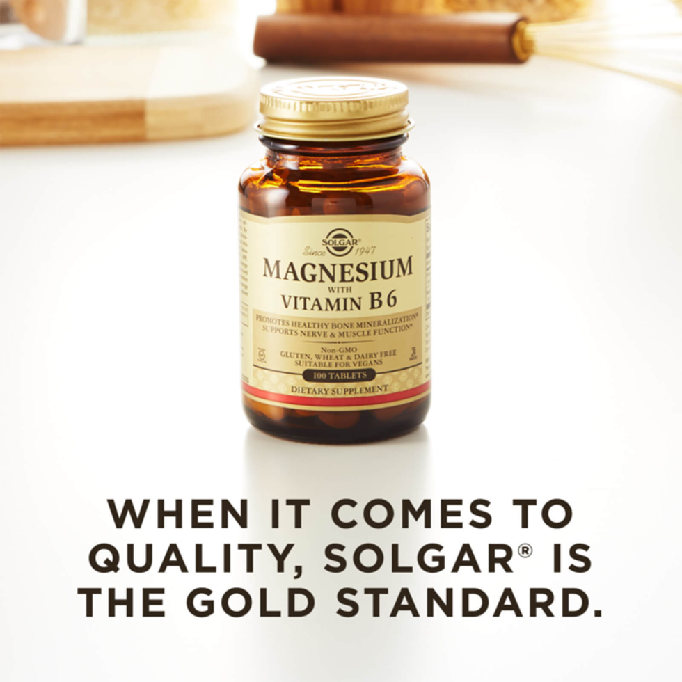 - Gluten, Wheat & Dairy Free; Solgar Magnesium with Vitamin B6 is non-GMO, vegan, kosher, and free of: gluten, wheat, dairy, soy, yeast, sugar, sodium, artificial flavor, sweetener, and preservatives