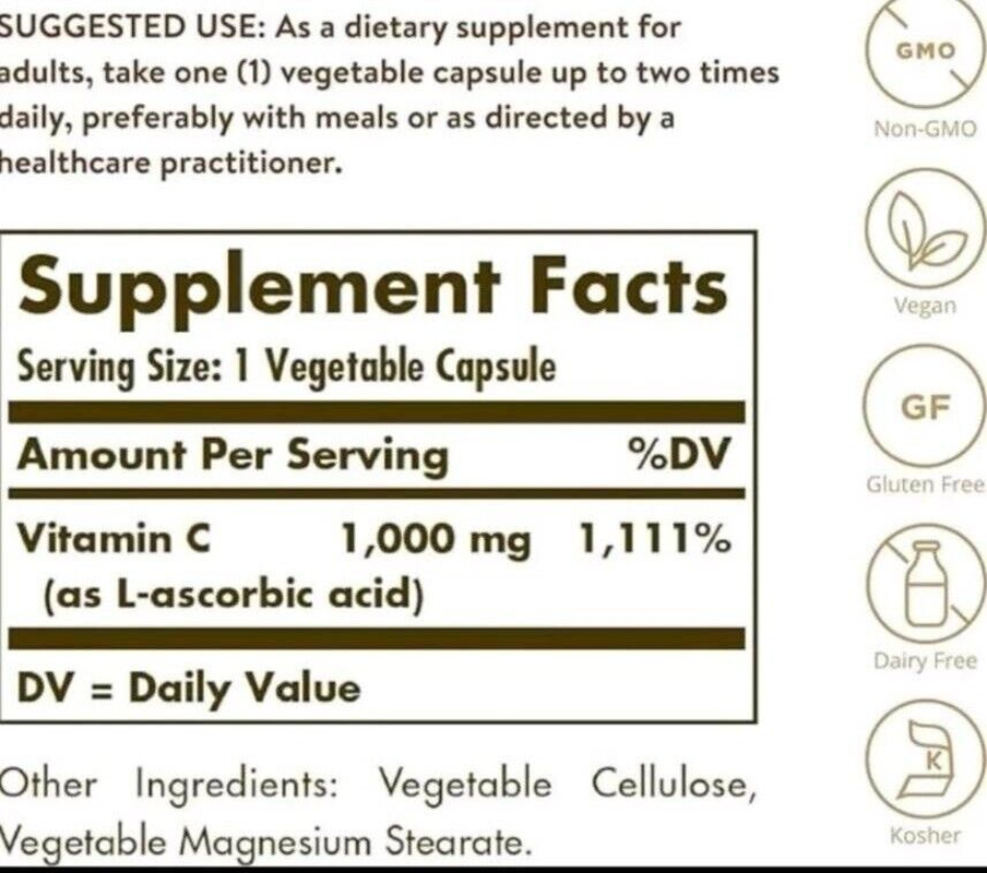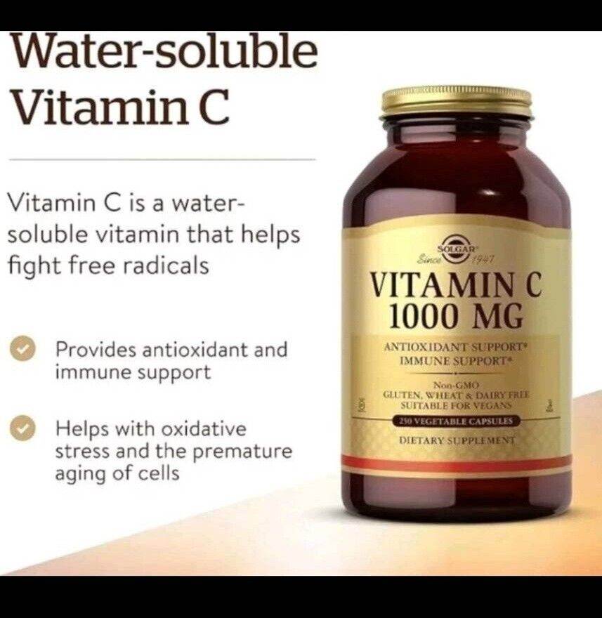 Solgar Vitamin C 1000Mg 250 Vegetable caps -NEW -:12/